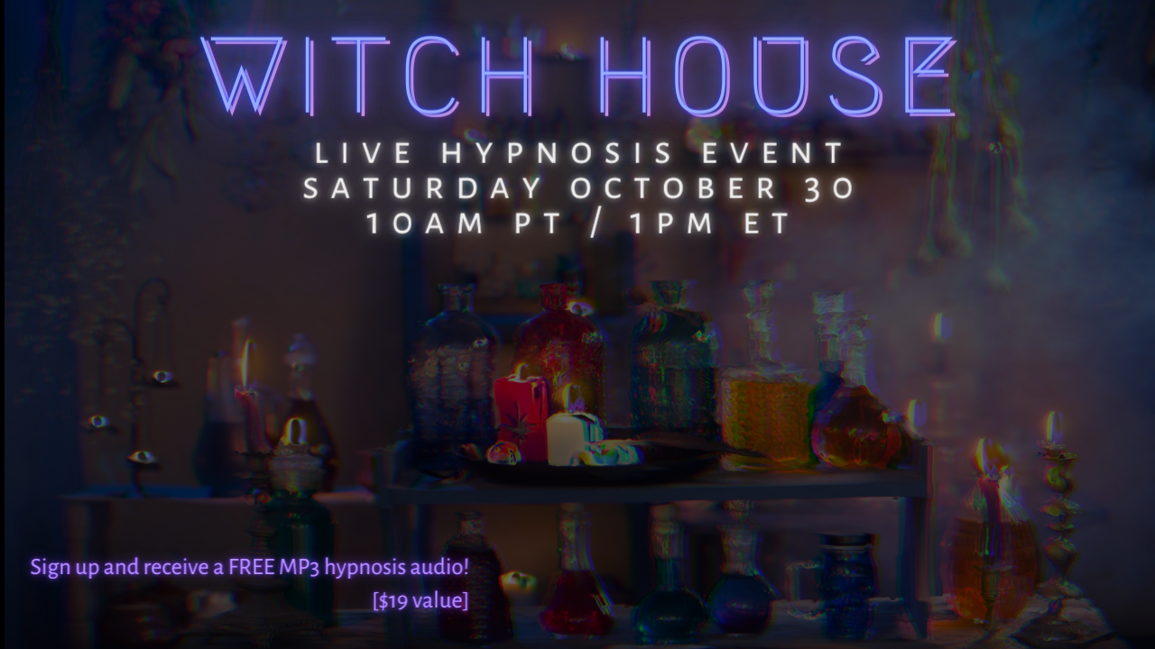 By signing up for the group event, you also get the WITCH HOUSE hypnosis audio recording (a $19 value). Listen anytime in the future that you wish to transmute past pain into forward momentum, and have a different experience in WITCH HOUSE each time!